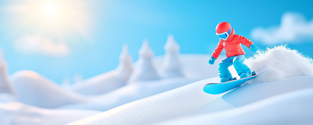 3D立体可爱卡通冬季人物滑雪姿势动作微观场景插图海报midjourney关键词咒语